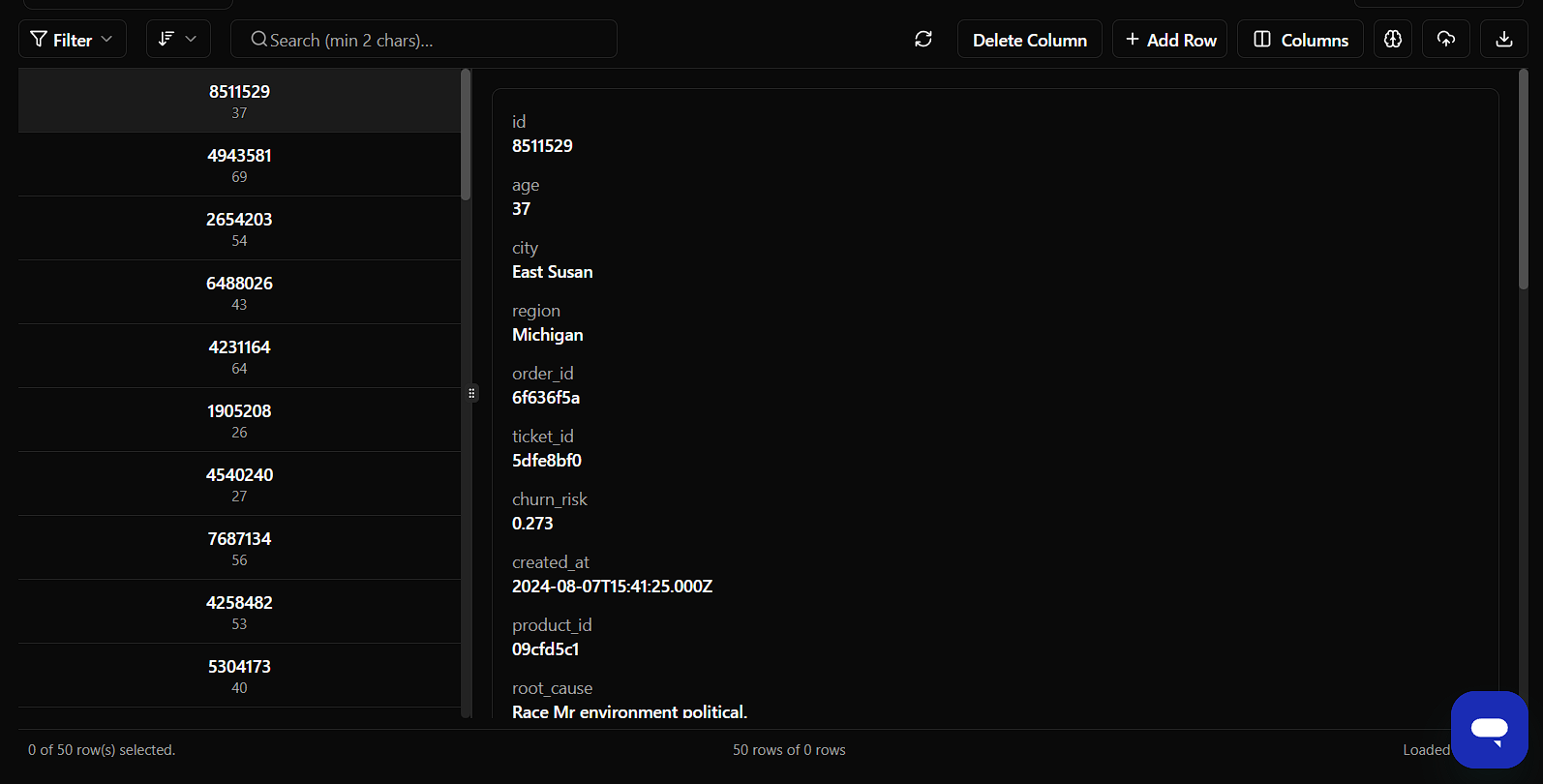 idagecityregionorder_idticket_idchurn_riskorder_amountphone_numberroot_causeagent_notes